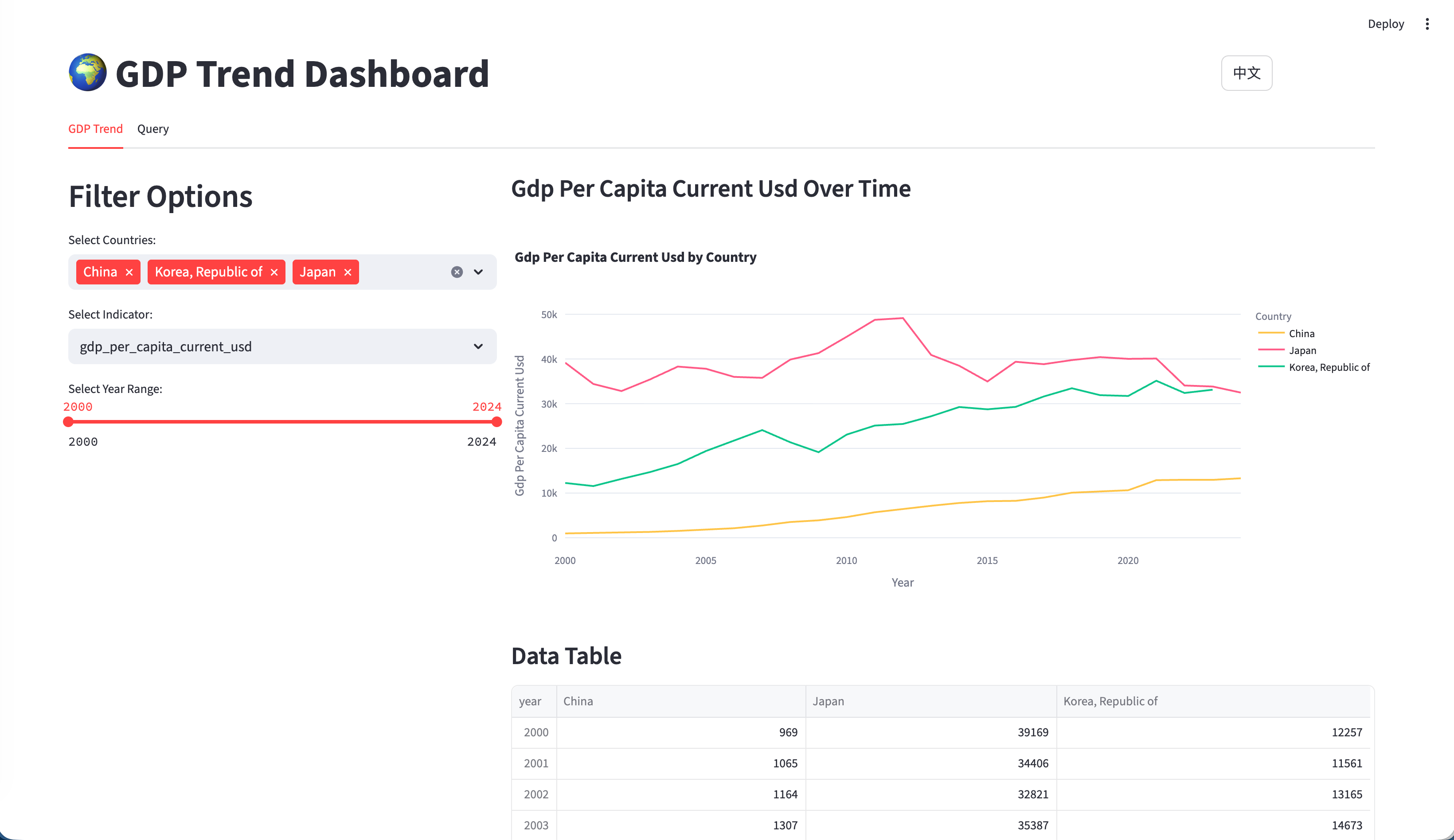 Nov 18, 2025 | Interactive GDP Trend Dashboard with AI SQL | Data Visualization, Streamlit, Economic Analysis, AI |