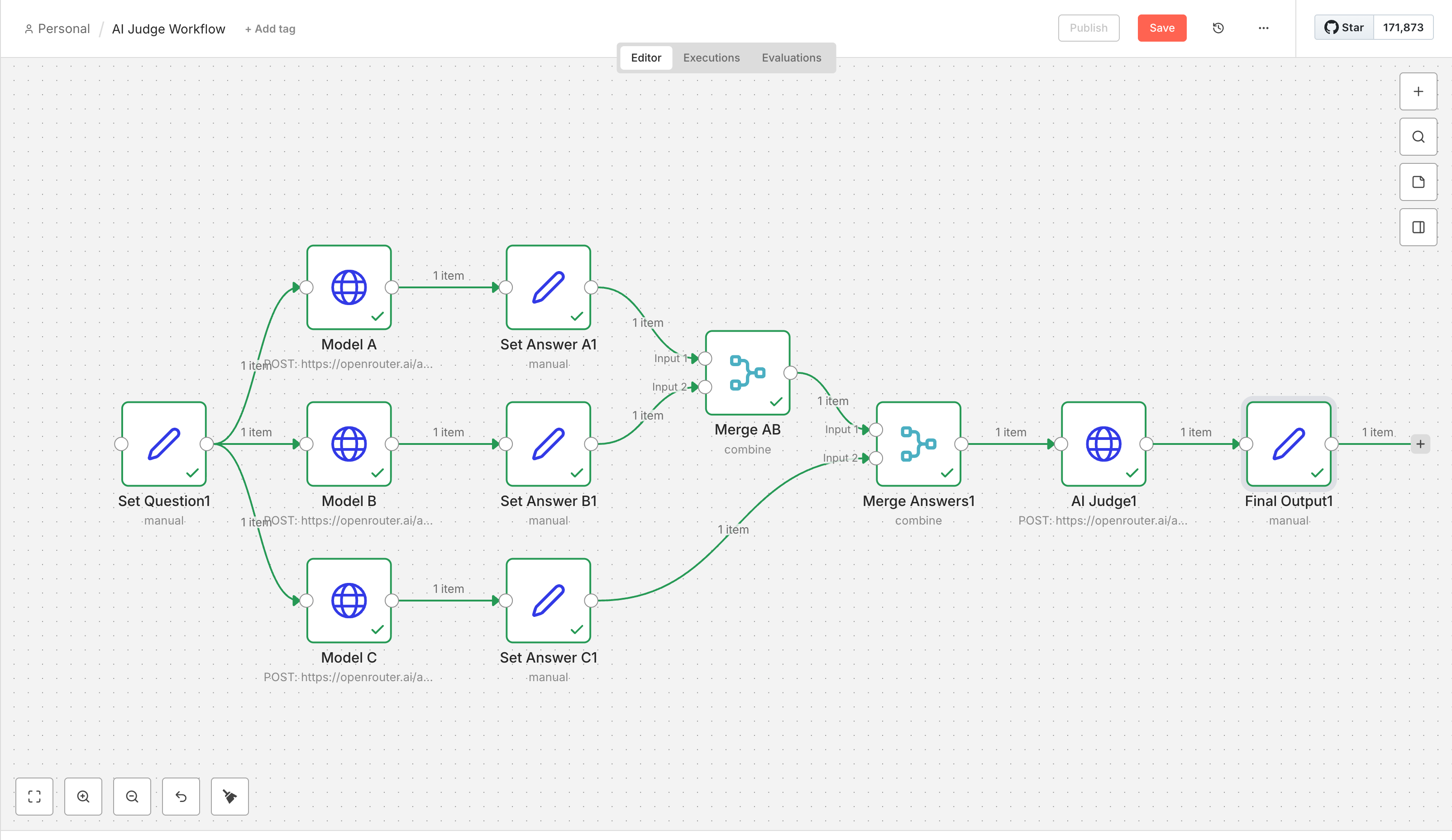 We define four key nodes for our graph: 1. Model A Node: Answers the question. 2. Model B Node: Answers the same question. 3. Model C Node: Answers the same question. 4. Judge Node: Reviews the question and all three answers without knowing the model names.