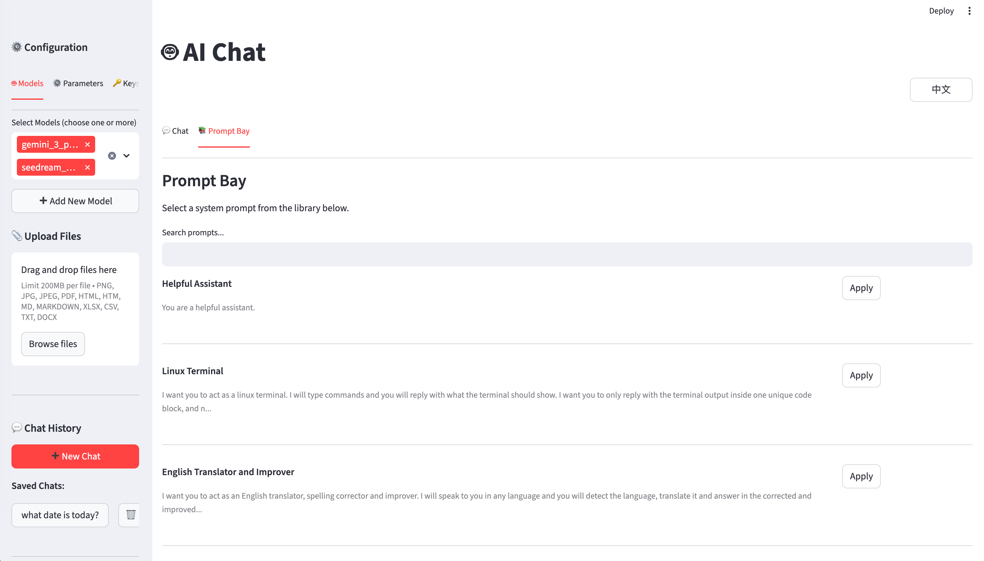In the rapidly evolving landscape of Artificial Intelligence, having a unified interface to interact with multiple models is invaluable. AI Chat is a multilingual, multi-model AI chat application built with Streamlit. It supports streaming responses, image inputs, concurrent model querying, web search, and comprehensive file processing.