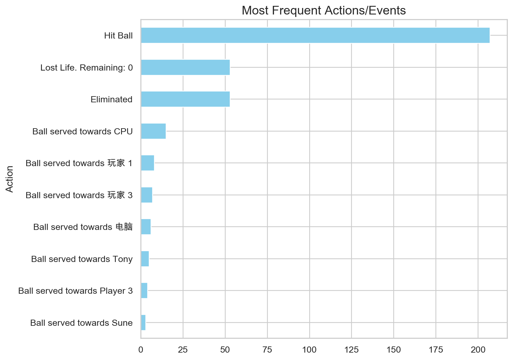 plt.title('Most Frequent Actions/Events', fontsize=15)