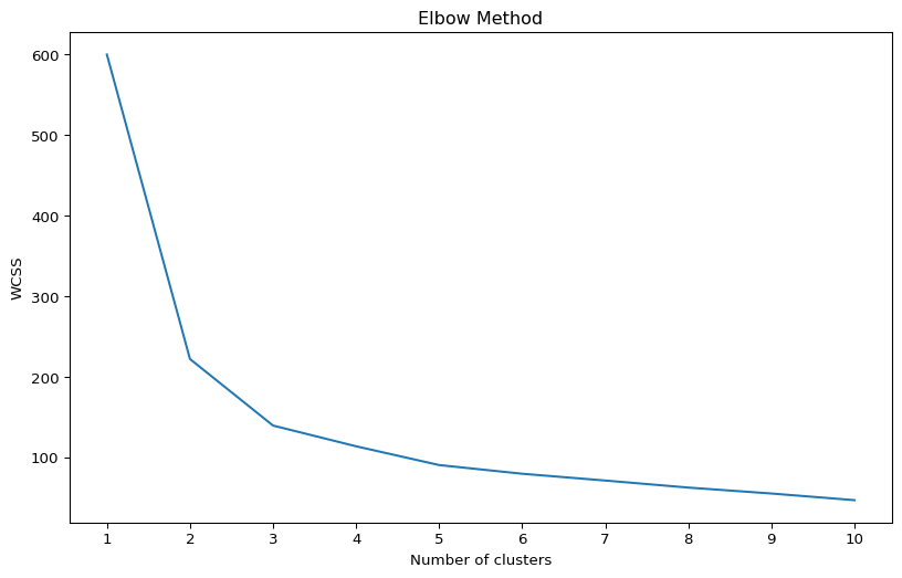 The Elbow Method is a heuristic used to determine the optimal number of clusters in a dataset. We can visualize the total within-cluster sum of squares (WCSS) as a function of the number of clusters. 3 looks like a good number.